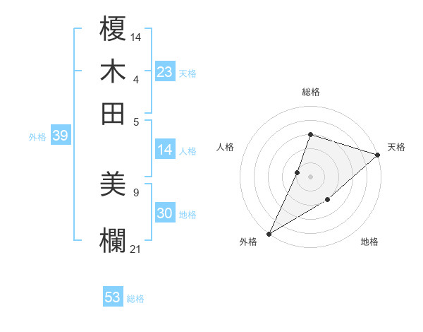榎木田 美欄さんの外格は39画の5点!