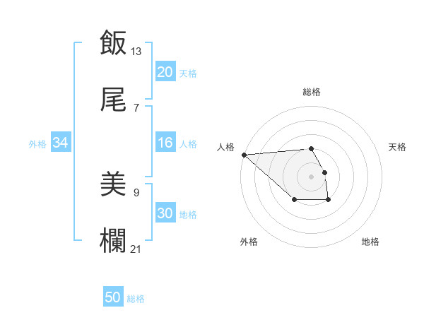 飯尾 美欄さんの天格は20画の1点!