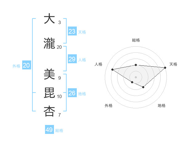 大瀧 美毘杏さんを姓名の画数から五運を鑑定