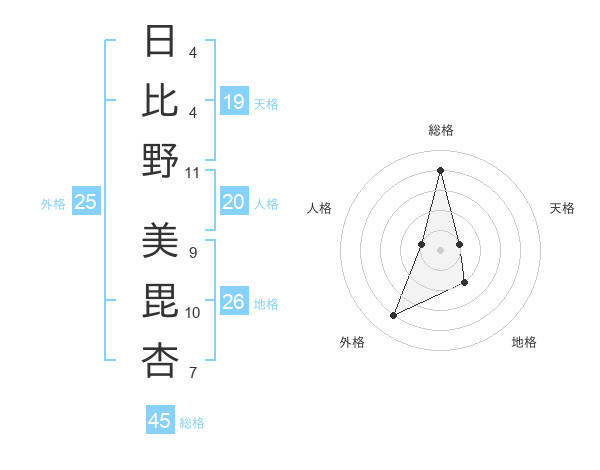 日比野 美毘杏さんの総格は45画の4点!