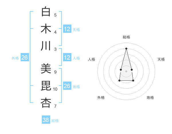 白木川 美毘杏さんを姓名の画数から五運を鑑定