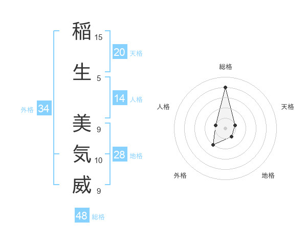 稲生 美気威さんを姓名の画数から五運を鑑定