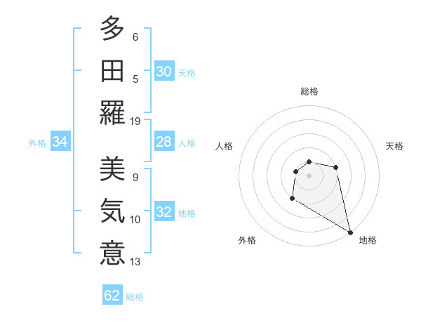 多田羅 美気意さんを姓名の画数から五運を鑑定