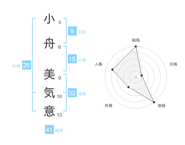 小舟 美気意さんを姓名の画数から五運を鑑定