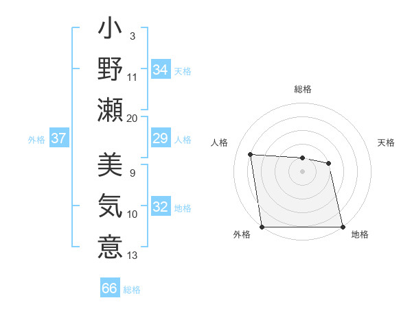 小野瀬 美気意さんの外格は37画の5点!