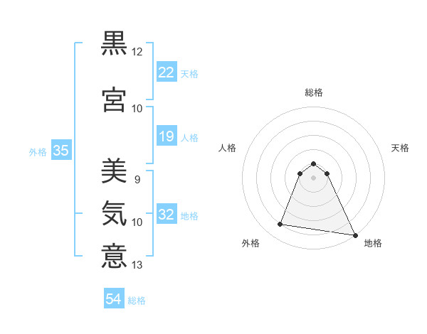 黒宮 美気意さんを姓名の画数から五運を鑑定