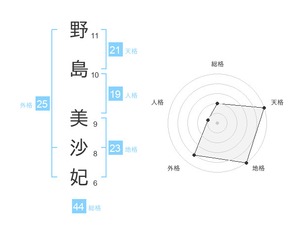 野島 美沙妃さんを姓名の画数から五運を鑑定