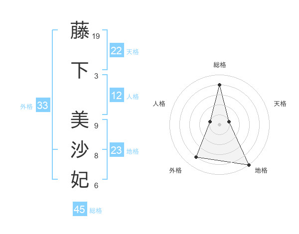 藤下 美沙妃さんの総格は45画の4点!