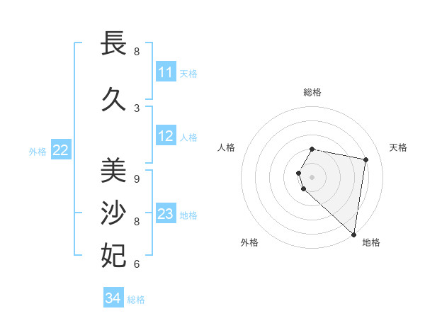 長久 美沙妃さんを姓名の画数から五運を鑑定