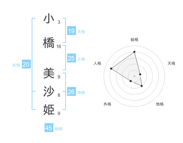 小橋 美沙姫さんの総格は45画の4点!