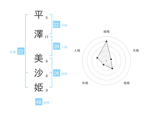 平澤 美沙姫さんの総格は48画の4点!