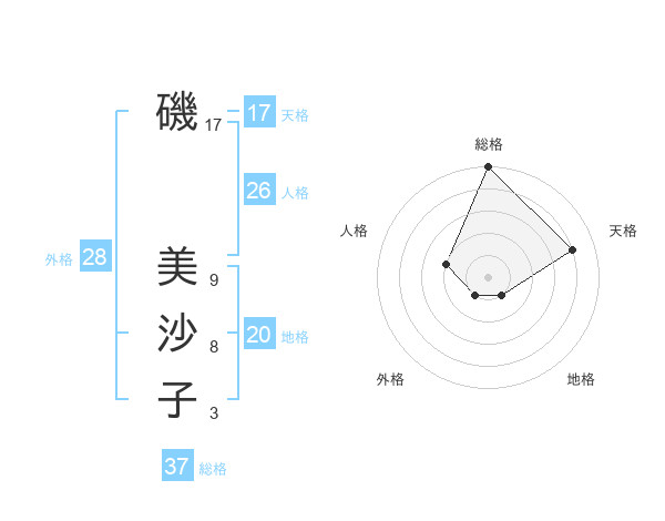 磯 美沙子さんを姓名の画数から五運を鑑定