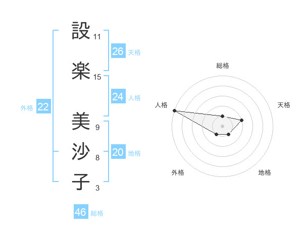設楽 美沙子さんを姓名の画数から五運を鑑定
