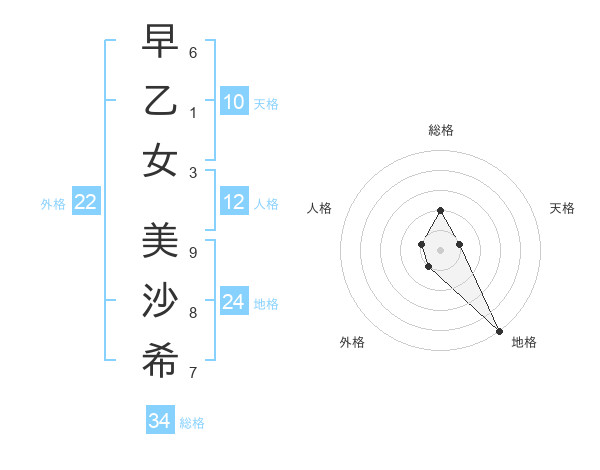 早乙女 美沙希さんの総格は34画の2点!