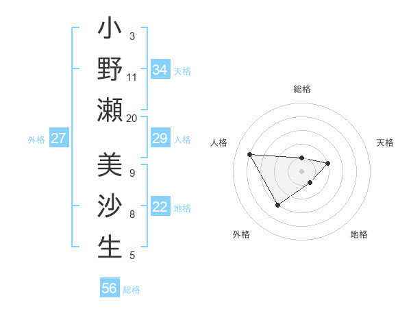 小野瀬 美沙生さんを姓名の画数から五運を鑑定