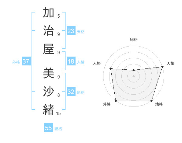 加治屋 美沙緒さんを姓名の画数から五運を鑑定