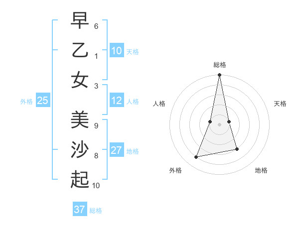 早乙女 美沙起さんを姓名の画数から五運を鑑定