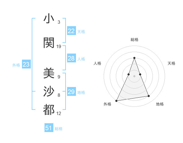 小関 美沙都さんを姓名の画数から五運を鑑定
