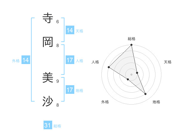 寺岡 美沙さんの総格は31画の5点!