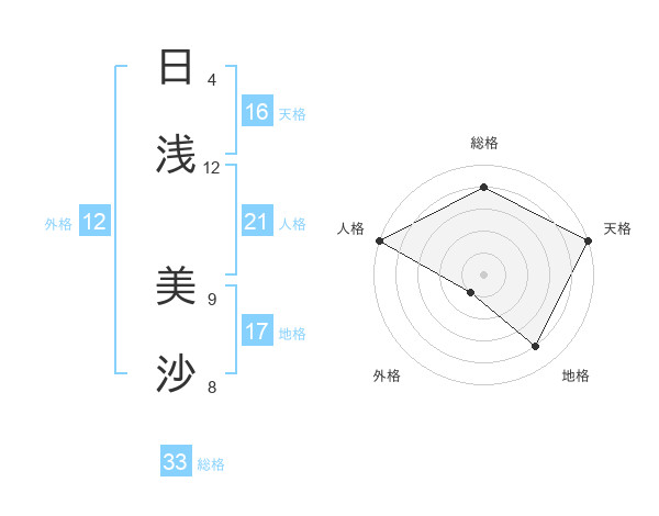 日浅 美沙さんの天格は16画の5点!