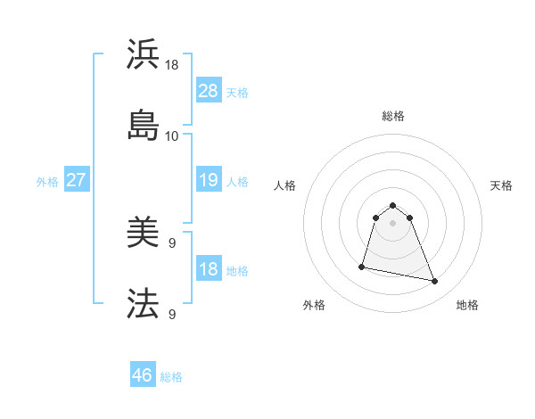 浜島 美法さんの総格は46画の1点!