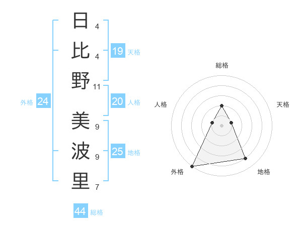 日比野 美波里さんを姓名の画数から五運を鑑定