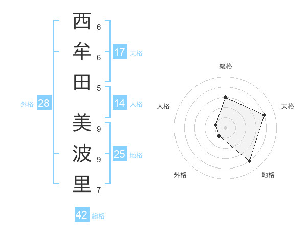 西牟田 美波里さんを姓名の画数から五運を鑑定