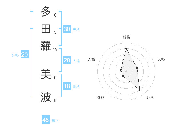 多田羅 美波さんの総格は48画の4点!
