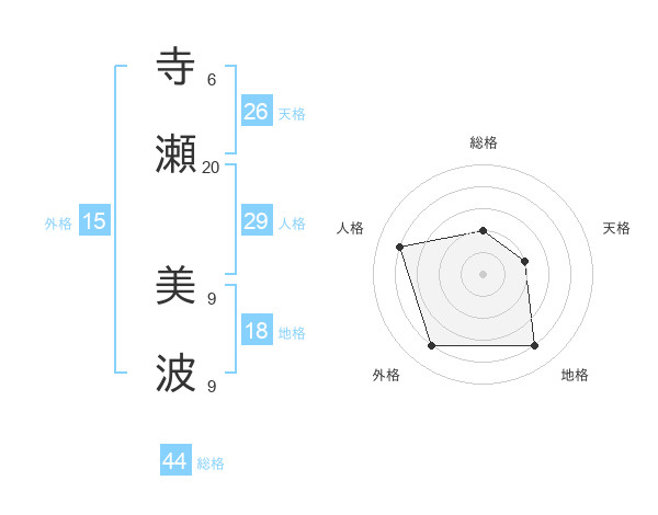 寺瀬 美波さんの総格は44画の2点!