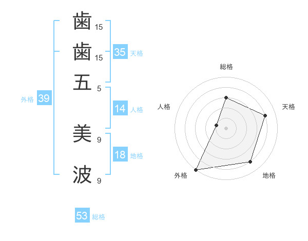 歯歯五 美波さんの総格は53画の3点!