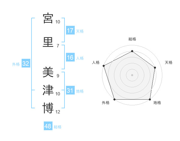 宮里 美津博さんの地格は31画の5点!
