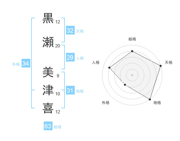 黒瀬 美津喜さんの天格は32画の5点!