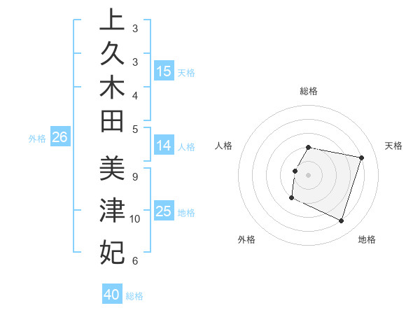 上久木田 美津妃さんを姓名の画数から五運を鑑定