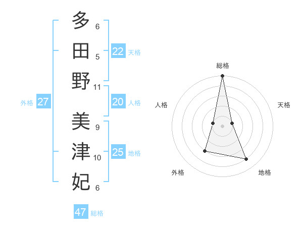 多田野 美津妃さんの総格は47画の5点