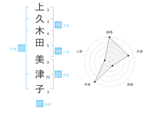 上久木田 美津子さんの総格は37画の5点