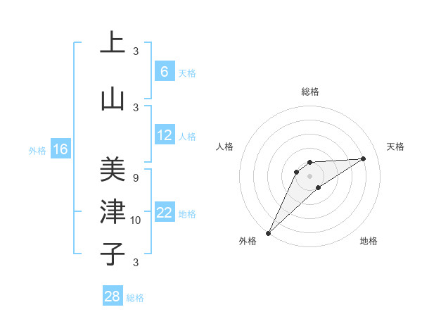 上山 美津子さんの外格は16画の5点!