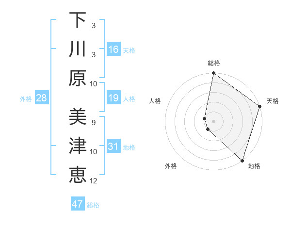 下川原 美津恵さんの総格は47画の5点!