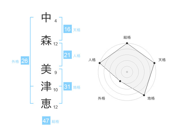 中森 美津恵さんを姓名の画数から五運を鑑定