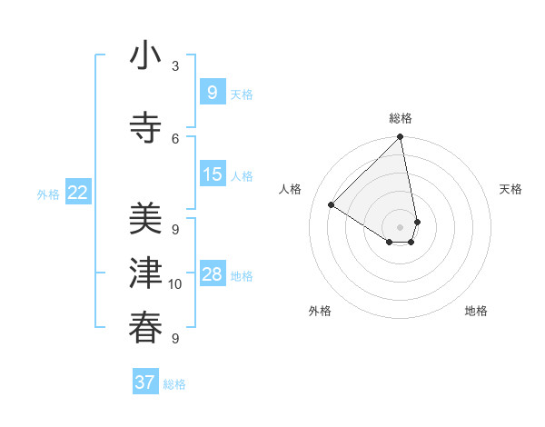 小寺 美津春さんを姓名の画数から五運を鑑定