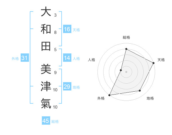 大和田 美津氣さんの外格は31画の5点!