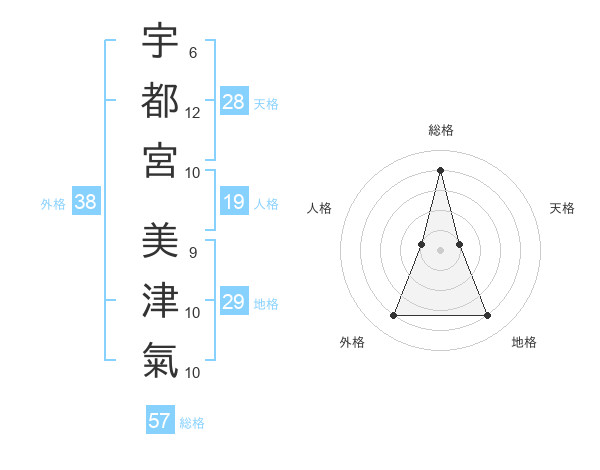 宇都宮 美津氣さんを姓名の画数から五運を鑑定