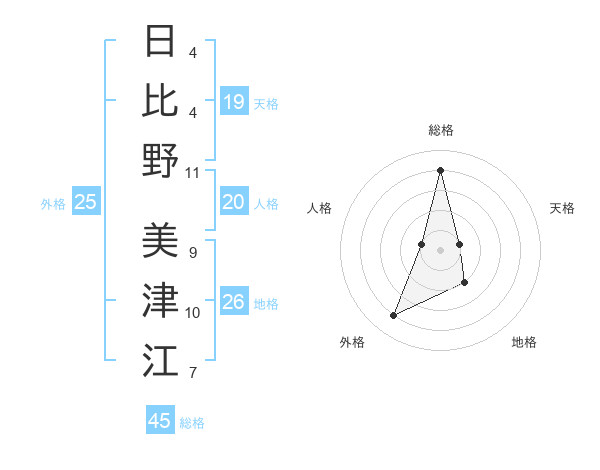 日比野 美津江さんを姓名の画数から五運を鑑定