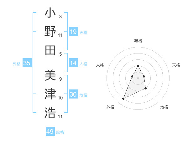 小野田 美津浩さんの総格は49画の2点!