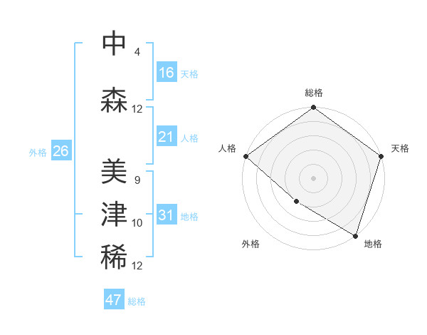 中森 美津稀さんを姓名の画数から五運を鑑定