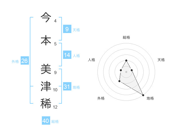 今本 美津稀さんを姓名の画数から五運を鑑定