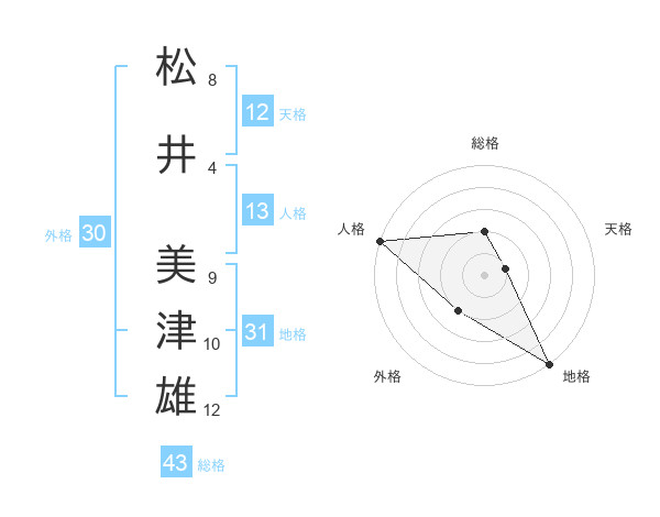 松井 美津雄さんを姓名の画数から五運を鑑定