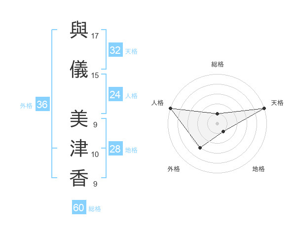 與儀 美津香さんを姓名の画数から五運を鑑定