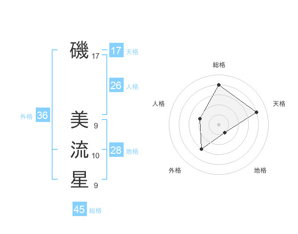 磯 美流星さんの総格は45画の4点!