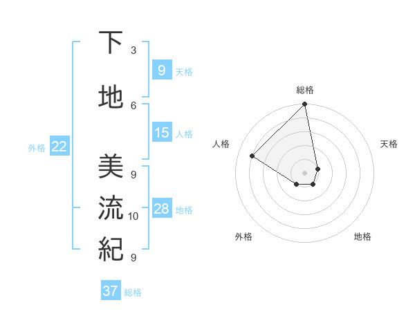 下地 美流紀さんを姓名の画数から五運を鑑定
