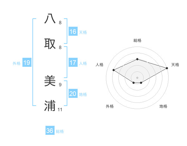 八取 美浦さんの天格は16画の5点!
